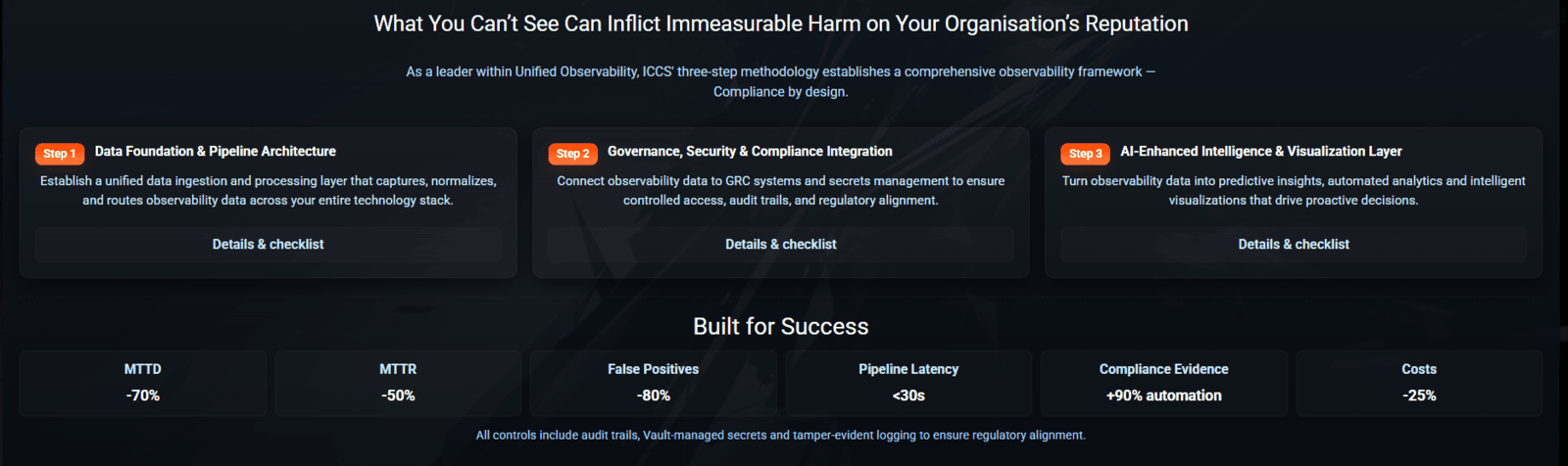 The client, a 25 year old stalwart in the tech industry wanted a charismatic, bold, information-rich site, and had shifted from offering a service management porfolio as its mainstay. The challenge called for fitting an array of existent services in with its new GRC platform and in-house AI model, specifically for auditors, as well as offering its newest developments to existing enterprise clientele.